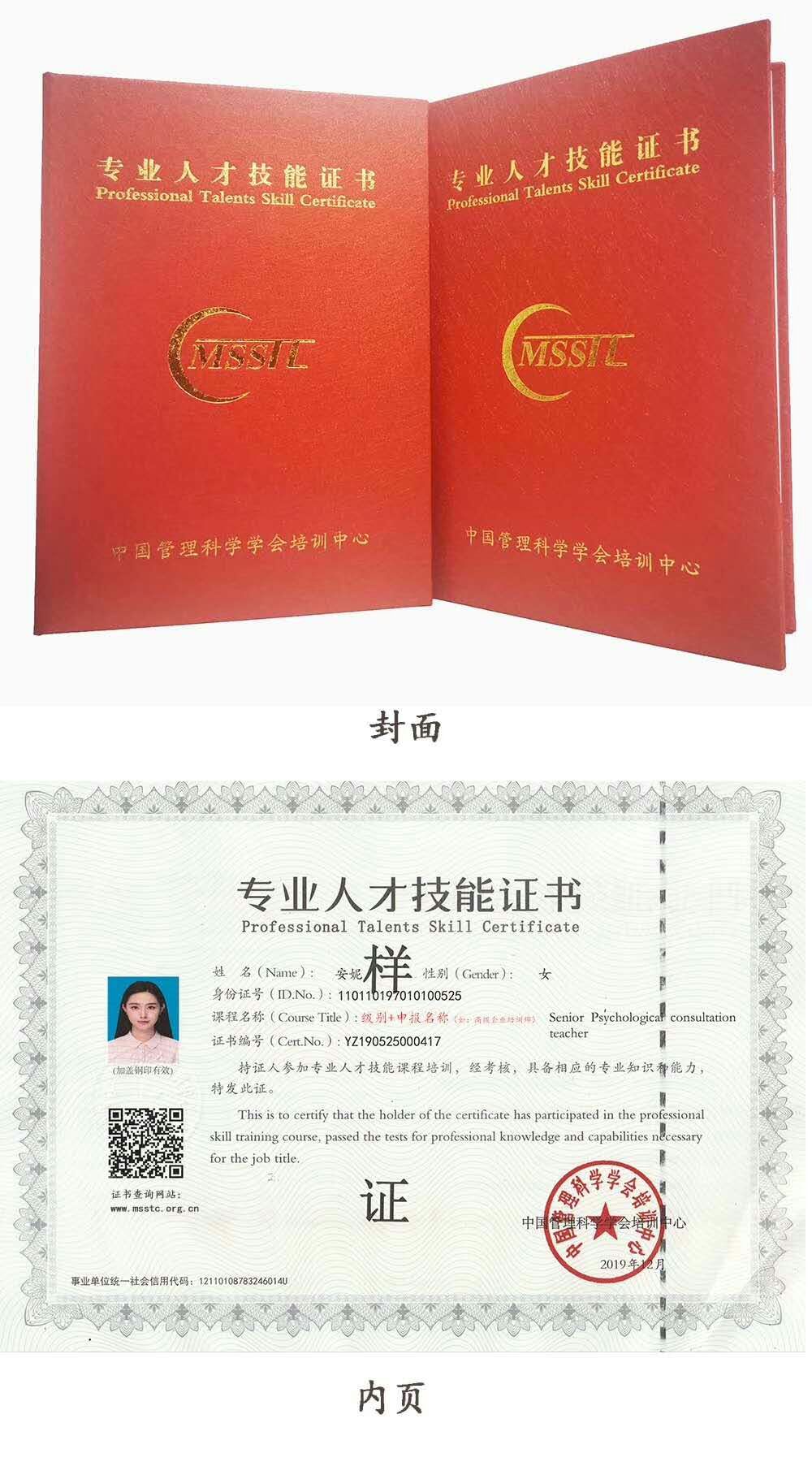 封面拉絲紋理(lǐ),簡約大(dà)氣,“專業人(rén)才技(jì)能證書(shū)”、“中國管理(lǐ)科學學會(huì)培訓中